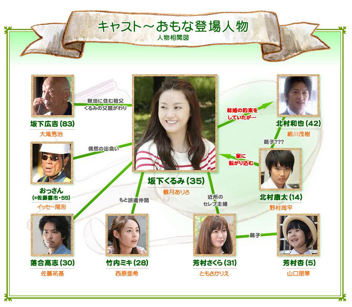 Title: 天使のわけまえ Title (romaji): Tenshi no Wakemae Also known as: Angel's Share Genre: Business, Family Episodes: 5 Broadcast network: NHK Theme Song: Na Mo Naki Hana Yo by Kawaguchi Kyogo Cast Mizuki Alisa Tomosaka Rie Hosokawa Shigeki Nishihara Aki Sato Tomohito Nomura Shuhei Nakamura Masaya Yamamura Shinya (山村真也) Kiba Hiromitsu (木庭博光) Nomaguchi Toru Okamoto Kotaro (岡本光太郎) Morioka Ryu (森岡龍) Fujii Mina Oshima Yoko Nishio Mari Nakamura Yasuhi Issee Ogata (イッセー尾形) Otaki Hideji Relationship Synopsis Mizuki plays a 35-year-old woman named Kurumi, who suddenly loses everything in her life when her fiance runs off with all of her assets. Left with a mere 15,000 yen and some boxes of ohagi (a type of rice ball), the despairing Kurumi happens upon a construction site, and she begins handing out the ohagi to the men working there. Using the theme of food, "Tenshi no Wakemae" depicts Kurumi's journey as she turns her life around. Audio: Cantonese Subtitles: Chinese File type: RMVB Filesonic Links Wupload Links Fileserve Links