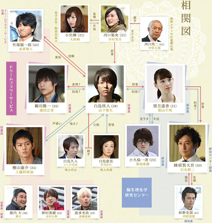 Title: アルジャーノンに花束を Title (romaji): Algernon ni Hanataba wo Also known as: Flowers for Algernon Format: Renzoku Genre: Drama Episodes: 10 Viewership ratings: 8.53% Broadcast network: TBS Broadcast period: 2015-Apr-10 to 2015-Jun-12 Cast Yamashita Tomohisa as Shiratori Sakuto Kuriyama Chiaki as Mochizuki Haruka Kubota Masataka as Yanagawa Ryuichi Kudo Asuka as Hiyama Kosuke Kikuchi Fuma as Kokubo Kazushige Tanimura Mitsuki as Kawaguchi Rio Oomasa Aya as Koide Mai Kaai Gamon as Sugino Shiro Katsuya (勝矢) as Shikanai Dai Maeda Goki as Kanda Yuki Saito Yoshiki (斎藤嘉樹) as Hata Kosuke Ishida Issei as Shiratori Hisato Kusakari Tamiyo as Shiratori Madoka Nakahara Takeo as Kawaguchi Reiji (special appearance) Hagiwara Masato as Takebe Junichiro Ishimaru Kanji as Hachisuka Daigo Synopsis Shiratori Sakuto is 28, but has the intelligence of a 6-year-old boy. He works for Dream Flower Service, a flower distribution centre which provides employment for problem youth. One day, he and a colleague, Yanagawa Ryuichi, delivers a rose bouquet to the apartment building where Mochizuki Haruka lives. Because Haruka does not know that the deliveryman is mentally challenged, she is shocked by his response and tries to call the police. Haruka works for a brain physiology research centre where Professor Hachisuka Daigo has been studying the improvement of mental performance. He has succeeded in lab experiments on a white mouse called Algernon. Sakuto is transformed into a genius through surgery. But Algernon's new intelligence begins to fade, and he dies. Sakuto realises that his genius, too, is destined to leave him. File type: RMVB Audio: Cantonese Pserve Links Flowers.for.Algernon.C.01-02.rmvb - 767.9 MB Flowers.for.Algernon.C.03-04.rmvb - 676.5 MB Flowers.for.Algernon.C.05-06.rmvb - 672.3 MB Flowers.for.Algernon.C.07-08.rmvb - 672.3 MB Flowers.for.Algernon.C.09-10.rmvb - 678.3 MB Episode 01-02 http://www.anafile.com/j9mtofx2kvh1.html http://www.anafile.com/k45iv8xed04p.html http://dfiles.eu/files/izs98crlp http://dfiles.eu/files/dyhctdnsf http://faststore.org/kgsj4ukpjt3i http://faststore.org/l7bsqmv3ne4u http://www.filefactory.com/file/4jv615p8okux/Flowers.for.Algernon.C.01-02.part1.rar http://www.filefactory.com/file/563ajprgs5g1/Flowers.for.Algernon.C.01-02.part2.rar http://www.gboxes.com/l8htkc8v0tji/Flowers.for.Algernon.C.01-02.part1.rar http://www.gboxes.com/zln92hae2uy2/Flowers.for.Algernon.C.01-02.part2.rar http://nornar.com/el1urfvz0hw4 http://nornar.com/o0bg46nmmhp7 http://rapidgator.net/file/64ef7723...c/Flowers.for.Algernon.C.01-02.part1.rar.html http://rapidgator.net/file/0dfc24ac...c/Flowers.for.Algernon.C.01-02.part2.rar.html http://rockfile.eu/wamfhg6rq8n9.html http://rockfile.eu/281y9k9o5q8q.html http://www.uploadable.ch/file/qJDPEfbruQav/Flowers.for.Algernon.C.01-02.part1.rar http://www.uploadable.ch/file/6n9yxtduyzCg/Flowers.for.Algernon.C.01-02.part2.rar http://ul.to/v00ds032 http://ul.to/ov2ak507 Episode 03-04 http://www.anafile.com/vn7tztjakow6.html http://www.anafile.com/iynwcgctvx4k.html http://dfiles.eu/files/8mdlye3zf http://dfiles.eu/files/wwvv7u88i http://faststore.org/aw9awgwp2xfr http://faststore.org/q2q0k96iokmc http://www.filefactory.com/file/vulz2hvekuz/Flowers.for.Algernon.C.03-04.part1.rar http://www.filefactory.com/file/61u5w5a3bbxt/Flowers.for.Algernon.C.03-04.part2.rar http://www.gboxes.com/sk5r78zg2r17/Flowers.for.Algernon.C.03-04.part1.rar http://www.gboxes.com/ikpmquqif7g3/Flowers.for.Algernon.C.03-04.part2.rar http://nornar.com/1c2s2fb0i7aa http://nornar.com/13buode36jf9 http://rapidgator.net/file/bb520e5e...a/Flowers.for.Algernon.C.03-04.part1.rar.html http://rapidgator.net/file/8473ba94...2/Flowers.for.Algernon.C.03-04.part2.rar.html http://rockfile.eu/6zb4mekl2gij.html http://rockfile.eu/3v1ueogg383s.html http://www.uploadable.ch/file/RTWuyRwAkx8m/Flowers.for.Algernon.C.03-04.part1.rar http://www.uploadable.ch/file/XQJGCkMjaDHA/Flowers.for.Algernon.C.03-04.part2.rar http://ul.to/a6dpbyf2 http://ul.to/r2hm8enn Episode 05-06 http://depositfiles.com/files/uqptvkc14 http://www.filefactory.com/file/2mc932l1u8d3/Flowers.for.Algernon.C.05-06.rmvb http://www.gboxes.com/gbm27sx8wlcl/Flowers.for.Algernon.C.05-06.rmvb http://rapidgator.net/file/d17aae5c9ca0657b7617a0c65efe71d7/Flowers.for.Algernon.C.05-06.rmvb.html http://rockfile.eu/3xki0qdtvqdt.html http://www.uploadable.ch/file/tvfsAmEp2ca7/Flowers.for.Algernon.C.05-06.rmvb http://ul.to/qztm46q4 Episode 07-08 http://www.anafile.com/pwbce2ol8e3d.html http://depositfiles.com/files/jgwdbgcob http://www.filefactory.com/file/297pz9ypi7gj/Flowers.for.Algernon.C.07-08.rmvb http://www.gboxes.com/gbp85pudc357/Flowers.for.Algernon.C.07-08.rmvb http://rapidgator.net/file/49547503c5ad1bcd5a593e7f9d5bc32d/Flowers.for.Algernon.C.07-08.rmvb.html http://rockfile.eu/vgyf4i2ge7xo.html http://www.uploadable.ch/file/7mwe2qbFgTV7/Flowers.for.Algernon.C.07-08.rmvb http://ul.to/ksgkx079 Episode 09-10 http://www.anafile.com/pi85jk10onwx.html http://depositfiles.com/files/a9mxe9nu8 http://www.filefactory.com/file/6wuaxpz5ayvp/Flowers.for.Algernon.C.09-10.rmvb http://nornar.com/z4fcsfl7emo0 http://rapidgator.net/file/aa84a4d6a7d4adf5ba03f0d64ba56e76/Flowers.for.Algernon.C.09-10.rmvb.html http://rockfile.eu/vizoeps0tcpz.html http://www.uploadable.ch/file/p9EBPeCd3dhc/Flowers.for.Algernon.C.09-10.rmvb http://ul.to/9qd5udnu