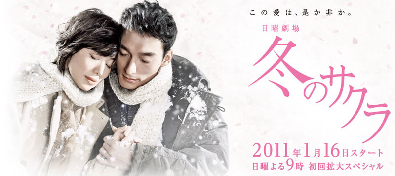 Title: 冬のサクラ Title (romaji): Fuyu no Sakura Tagline: この愛は、是か非か。 Tagline (romaji): Kono Ai wa, Ze ka Hi ka. Format: Renzoku Genre: Romance, family Episodes: 10 Broadcast network: TBS Theme song: Aishiteru tte Ienaku tatte by Yamashita Tatsuro Cast Kusanagi Tsuyoshi as Inaba Yu Imai Miki as Ishikawa Monami Sato Takeru as Inaba Hajime Kato Rosa as Mukai Anna Yamazaki Shigenori as Nakazato Jiro Denden as Inaba Tetsuya Oshima Yoko as Inaba Kaori Shirahane Yuri as Shiraishi Rie Yuui Ryoko as Murase Chihiro Morisako Ei as Ishikawa Kotone Yoshida Hideko as Inaba Yuri Enami Kyoko as Ishikawa Shoko Takashima Masanobu as Ishikawa Koichi Synopsis Glass blower, Tasuku, has never been in love… until he encounters Monami, a woman with no memory. En route to Yamagata Prefecture in northern Japan in hopes of seeing winter blooming cherry blossoms, called keio-zakura, Monami had met with an accident. She can’t recall why she has come, nor that she has a husband and child waiting for her in Tokyo. Nevertheless, love blooms between Tasuku and Monami. But is it destined to be as fleeting as the ephemeral winter blossoms? File type: RMVB Audio: Cantonese Episode 01-02 http://www.filejungle.com/f/a92d3A http://www.fileswap.com/dl/YpPICkQIpR/Fuyu.no.Sakura.C.01-02.rmvb.html http://www.uploadstation.com/file/7qRHFUH http://www.filesonic.com/file/Cekjasu http://www.fileserve.com/file/bM9jEA6 http://ul.to/jmr52no8 Episode 03-04 http://www.filejungle.com/f/CdxDhJ http://www.fileswap.com/dl/yiZoDvjXyr/Fuyu.no.Sakura.C.03-04.rmvb.html http://www.filesonic.com/file/NDkFuqm http://www.uploadstation.com/file/nswqrvp http://www.fileserve.com/file/rrMHnkN http://ul.to/n3rs0z3k Episode 05-06 http://www.filejungle.com/f/trdH7z http://www.fileserve.com/file/YNWD72P http://www.filesonic.com/file/Kvuf1Ju http://www.fileswap.com/dl/WM0OedzgOC/Fuyu.no.Sakura.C.05-06.rmvb.html http://www.uploadstation.com/file/KT628N2 http://ul.to/wjs2xy0g Episode 07-08 http://www.fileswap.com/dl/AXEJUqDCuH/Fuyu.no.Sakura.C.07-08.rmvb.html http://freakshare.com/files/8inxzk5x/Fuyu.no.Sakura.C.07-08.rmvb.html http://hotfile.com/dl/144272032/80ba6fb/Fuyu.no.Sakura.C.07-08.rmvb.html http://depositfiles.com/files/va2sne9o8 http://ul.to/nmka4anv Episode 09-10 http://bitshare.com/files/3iyxuijz/Fuyu.no.Sakura.C.09-10.rmvb.html http://depositfiles.com/files/bqtq070pc http://hotfile.com/dl/145380692/2070918/Fuyu.no.Sakura.C.09-10.rmvb.html http://ul.to/4jn5stde