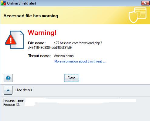 that's not a virus..it said archive bomb. google showed.." Archive bomb This is a seemingly small archive file that is actually highly compressed and expands into a huge file or several identical files. Such archives typically take quite a long time to scan, thus potentially forming a DDoS attack on an anti-virus program that tries to scan them. Good anti-virus programs include a smart algorithm to avoid extracting such files." it's safe to EAT.