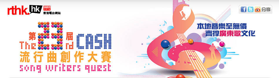 Host Astrid Chan (陳芷菁) , Alex Lee (李志剛) Judges 評判 周耀輝, 林健華, 區新明, 陳浩然, 馮穎琪, 葉廣權, 趙增熹 Guests The3Think Tat Dik (狄易達) Hubert Wu (胡鴻鈞) Crystal Cheung (張紋嘉) Karene Mak (麥貝夷) Sammi Yip (葉慧婷) Ryan Lau (劉威煌) Jason Chung (鍾一憲) Edmond Leung (梁漢文) 黃凱琪 陳倩儀 Description 香港作曲家及作詞家協會(CASH)一向致力推廣及贊助音樂活動,鼓勵本地創作及設立音樂獎學金,以提高香 港的音樂水準。由香港作曲家及作詞家協會(CASH)主辦、電視廣播有限公司及香港電台第二台協辦,一年一 度的《CASH流行曲創作大賽》亦是其中推廣活動之一。 而本年度《第二十三屆CASH流行曲創作大賽》將於2011年12月3日假將軍澳電視廣播城舉行,屆時將由 李志剛及陳芷菁擔任司儀,並由多位著名音樂人擔任大會評判,當中包括林健華、周耀輝、區新明、馮穎琪、葉廣 權、趙增熹及Edward Chan,從十首候選歌曲之中選出本年度「最佳歌曲」冠、亞、季軍。此外,亦會頒發由樂迷投票選出的「網上 最受歡迎歌曲獎」。當晚並邀請了實力派歌手梁漢文擔任表演嘉賓,為參賽者打氣。 Google translated http://www.filejungle.com/f/SxDaFa http://www.fileserve.com/file/eVDdkP3 http://www.filesonic.com/file/4080158575 http://www.uploadstation.com/file/2vtjVEJ http://filepost.com/files/8f2b9f89 http://ul.to/15z54wdw